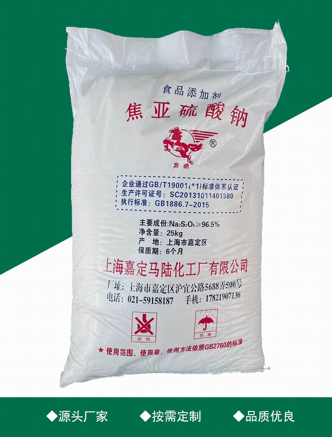 上海嘉定馬陸化工廠有限公司主營生產(chǎn),焦亞硫酸鈉、亞硫酸氫鈉等產(chǎn)品生產(chǎn),幾十年的專注焦亞硫酸鈉研發(fā)生產(chǎn),公司擁有完整、科學(xué)的質(zhì)量管理體系,為確保公司產(chǎn)品能夠長期立足于市場,增強(qiáng)客戶的粘性,可滿足客戶的非標(biāo)定制需求,可提供產(chǎn)品各個(gè)用途的解決方案,公司重信譽(yù)、守合同、保質(zhì)量、快速發(fā)貨以,我們擁有專業(yè)的售前售中、售后團(tuán)隊(duì)共同協(xié)作,確保用戶采購中的每個(gè)環(huán)節(jié)都能有滿意的體驗(yàn)度。